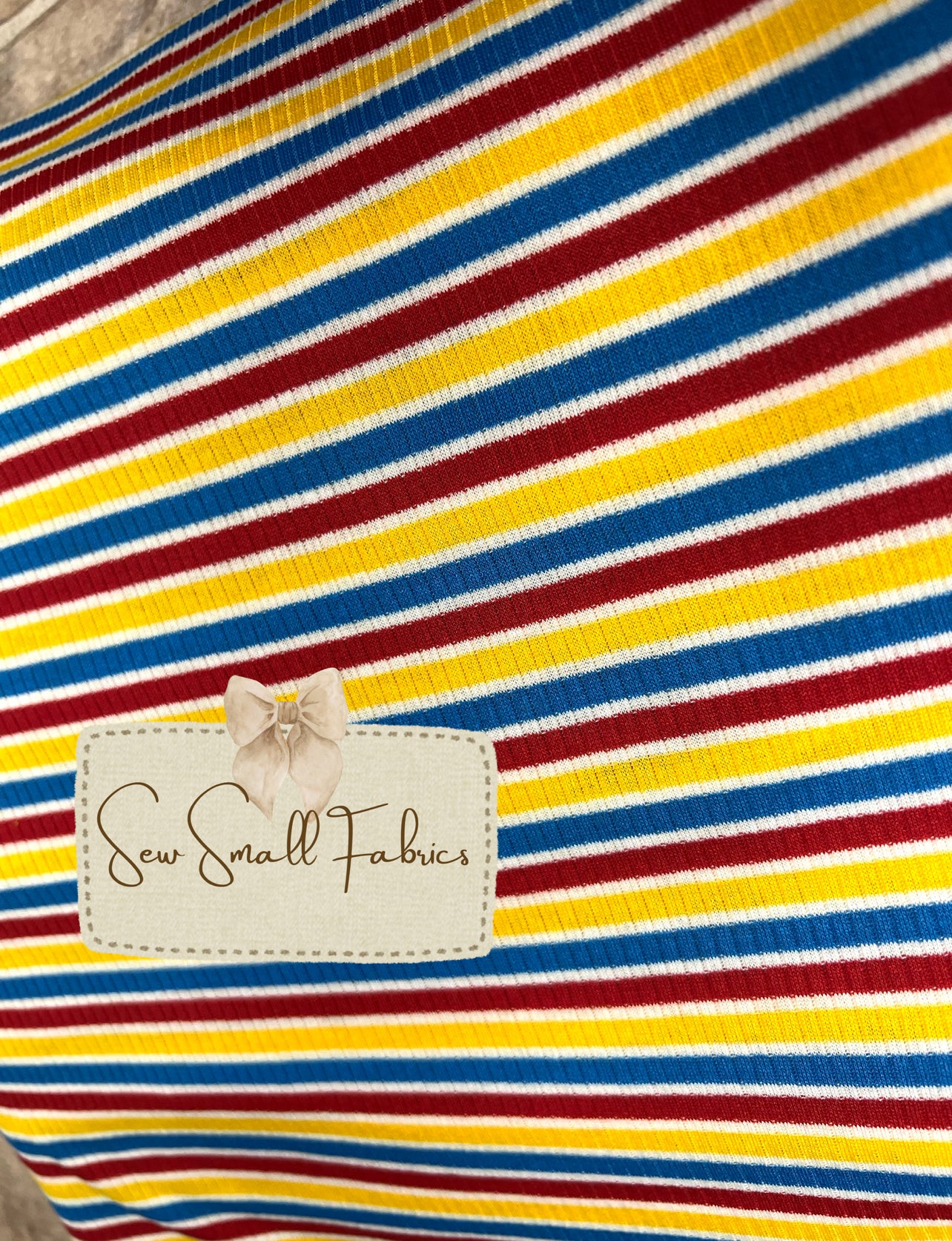 Yellow/Red/Blue MULTICOLOR YARN DYE 4X2 RIB POLYESTER RAYON SPANDEX